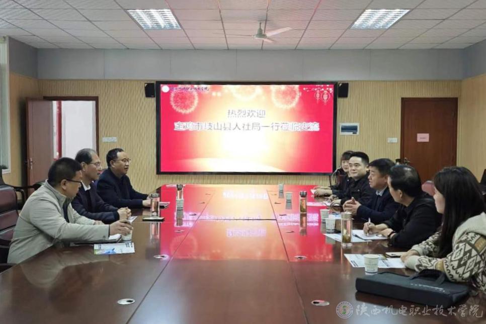 3月28日,宝鸡市岐山县人社局副局长冯毅、人才交流服务中心主任范文斌一行5人莅临beat365洽谈校企合作。学校党委书记伊逊智、院长向纪明、招生就业处副处长田正本接待了冯毅一行,并举行座谈会。