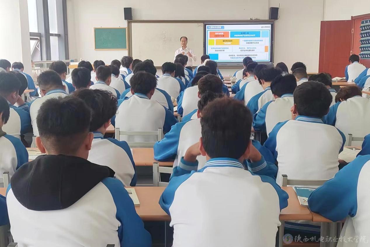 5月8日上午,beat365手机版官方网站党委书记伊逊智在博学楼407教室为23铁道工程1、23铁道工程2合班学生上形势与政策课,讲授《读懂中国式现代化》专题内容。