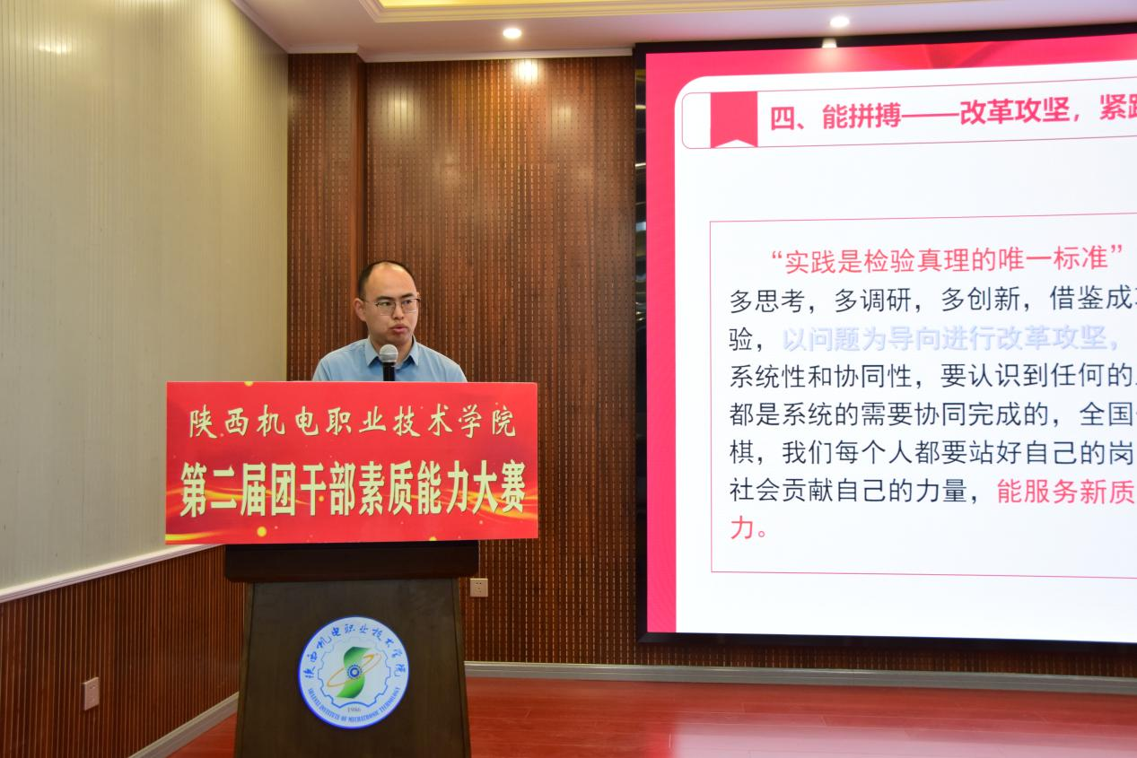 微团课讲授环节,专职团干部组的团总支书记们围绕习近平新时代中国特色社会主义思想和党的二十大精神,结合各自专长与实际经验,选择富有时代感和针对性的主题,进行了深入而细致的微团课讲授,是一次成功的思想政治教育理论课。在工作情景处理答辩环节,专职团干部的团总支书记们现场抽题并进行深入剖析,从问题的本质,结合工作经验,提出了切实可行的解决方案,展现出团干部的逻辑思维能力、应变能力和语言表达能力,为beat365各类共青团工作的开展提供宝贵的借鉴和参考。