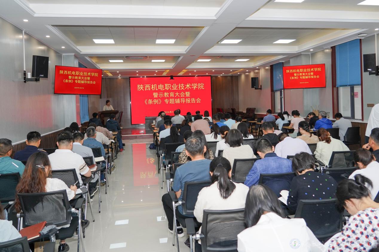 5月29日下午,学校在蟠龙校区博学楼111室召开警示教育大会暨党纪学习教育专题辅导报告会,全面落实党中央和省委关于党纪学习教育的部署要求,深化以案为鉴、以案明纪、以案促改,推动学校全体师生党员认真学习《中国共产党纪律处分条例》,真正做到学纪、知纪、明纪、守纪,为推进学校高质量发展提供坚强纪律保障。会议分两个阶段进行,分别由党委委员、党委宣传部部长李明,纪委副书记、纪律检查室主任王芙蓉主持。校领导、中层干部、全体师生党员近200人参加。