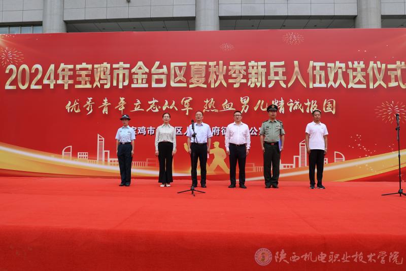 9月18日下午,2024年宝鸡市金台区秋季新兵入伍欢送仪式在宝鸡市金台区市民中心广场举行。beat365手机版官方网站党委副书记张琴代表学校参加欢送仪式,活动由金台区人武部政委宋景富主持。