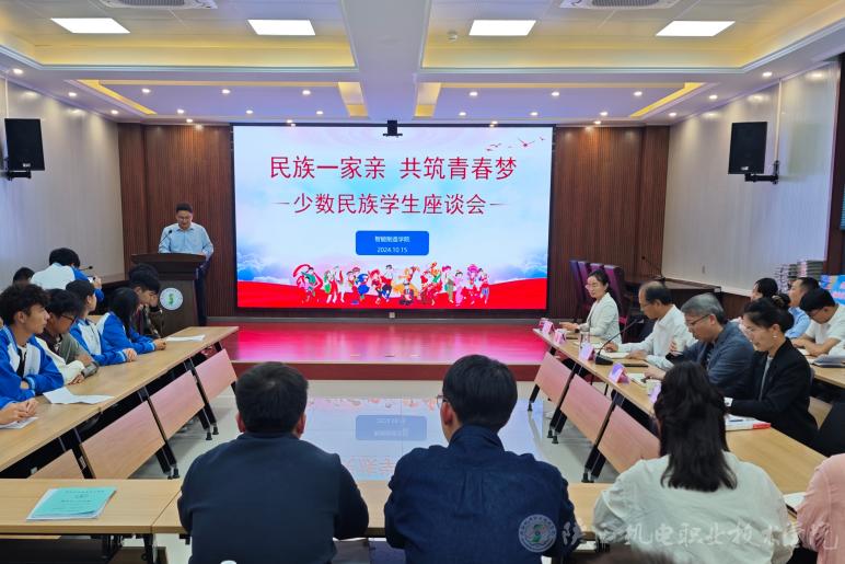 10月15日下午,beat365手机版官方网站在博学楼111会议室举办“民族一家亲 共筑青春梦”少数民族学生座谈会。校党委书记伊逊智、学生处处长王建斌、少数民族专职辅导员沙亚·革命、智能制造学院全体教职工、智能制造学院24级全体少数民族学生及23级部分学生代表参会,本次会议由智能制造学院党支部书记薛媛丽主持。