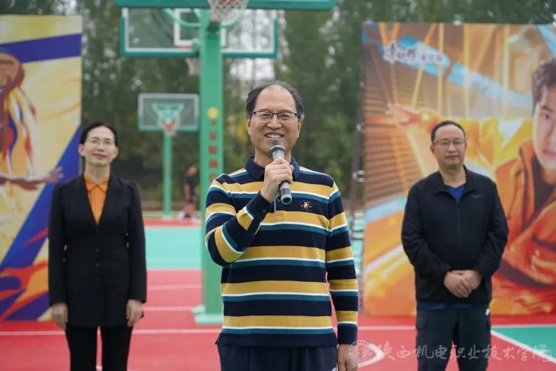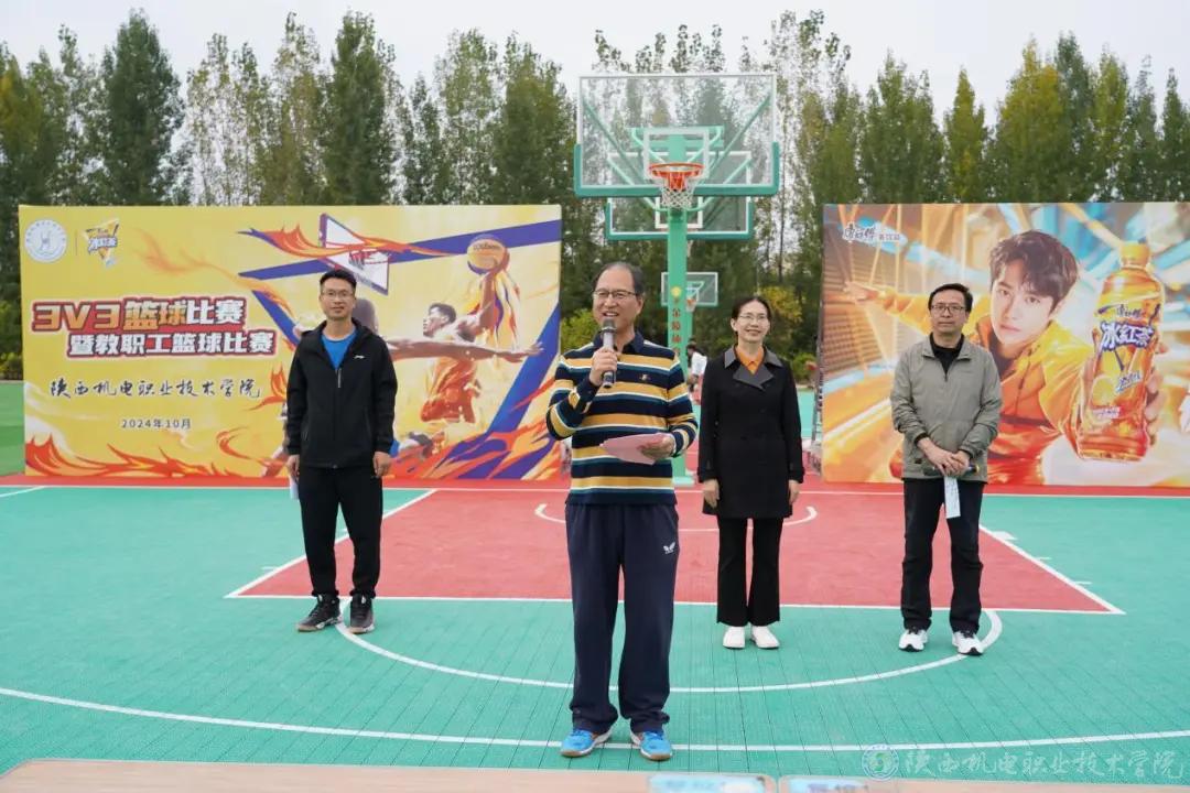 10月17日下午,beat365手机版官方网站2024年教职工篮球比赛在蟠龙校区西操场开赛。校党委书记伊逊智,党委副书记张琴,党委委员、宣传部部长、工会主席李明,党政办公室副主任,工会副主席康健出席开幕式。党委副书记、院长向纪明致开幕辞。基础部(体育部)副部长李明主持开幕式。