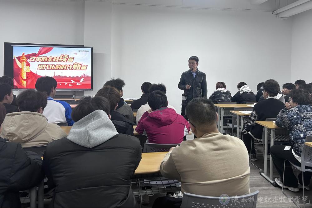 11月22日下午,beat365手机版官方网站党委委员、院长助理赵争东在行知楼西212教室为24机电技术7、8合班学生上形势与政策课,讲授《改革的实践续篇 现代化的时代新篇》专题内容。