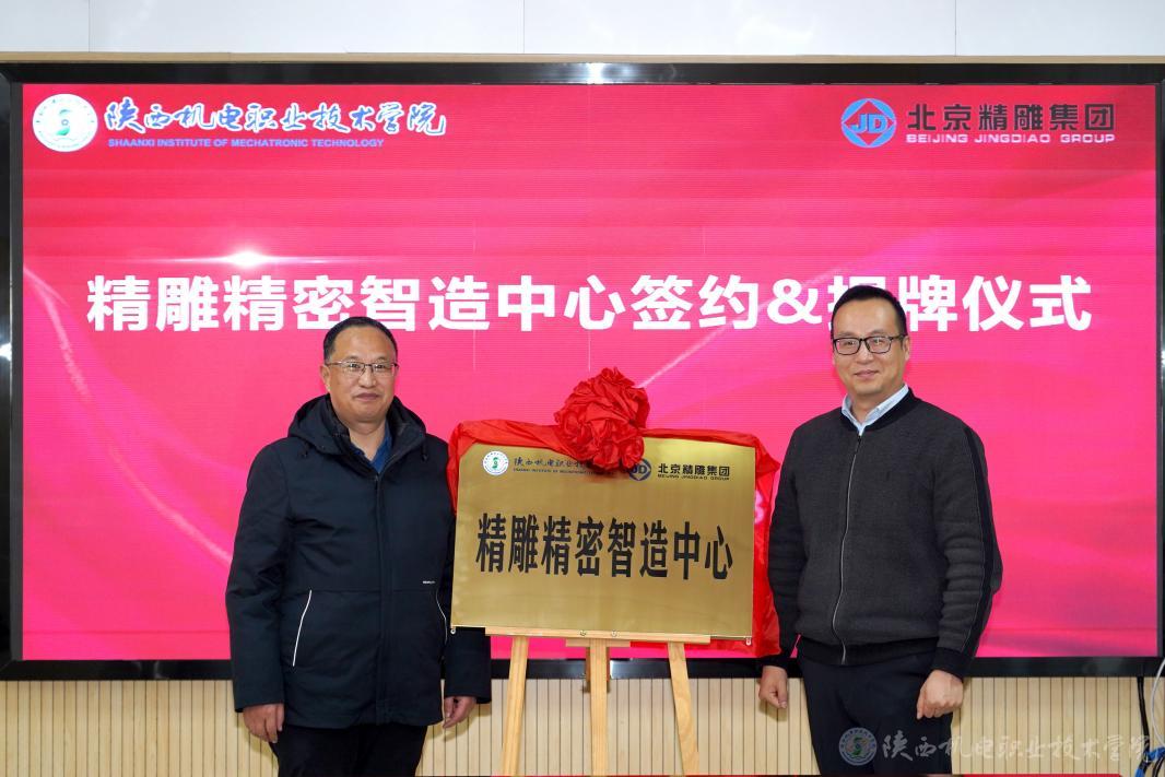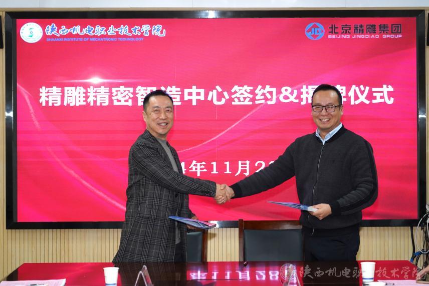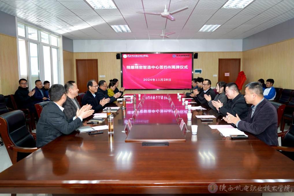 11月28日,陕机电精雕精密智造中心签约揭牌仪式在图书馆二楼会议室举行,北京精雕科技集团有限公司(以下简称“北京精雕公司”)行政总监李文华、北京精雕公司教育总监关山,beat365手机版官方网站党委书记伊逊智,党委副书记、院长向纪明等参加揭牌仪式。仪式由党委委员、副院长张克主持。