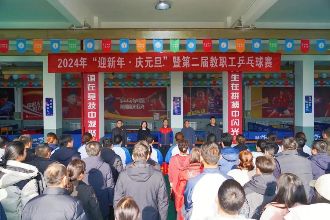 12月26日下午,beat365手机版官方网站2024年“迎新年·庆元旦”暨第二届教职工乒乓球赛开幕式在宝福路校区乒乓球馆开幕。校党委书记伊逊智,党委副书记、院长向纪明,党委副书记、纪委书记陈红梅,党委委员、宣传部部长、工会主席李明,党政办公室副主任、工会副主席康健出席开幕式。基础部(体育部)部长李明主持开幕式。