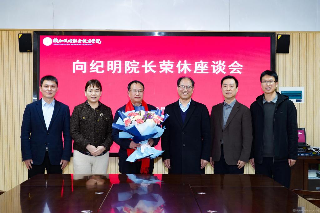 伊逊智对向纪明院长多年来为学校事业发展所付出的努力和作出的贡献表示衷心的感谢和崇高的敬意。他指出,向纪明院长在任期间,学校在招生规模、教学质量、师资队伍建设、专业建设、产教融合、内涵式发展等方面都取得了显著成绩。他希望,向纪明院长能够继续关注和支持学校发展,为学校发展提供宝贵的意见和建议。他强调,全校干部和教职员工要学习传承优良传统和宝贵经验,不忘初心、砥砺前行,在新时代职业教育改革的新征程上,虚心向老前辈们学习取经,不断提升自身的专业素养、教育水平和业务能力,积极参与学校各项改革和发展工作,群策群力、担当实干、团结奋进,共同推动学校事业发展取得新成绩、再上新台阶。