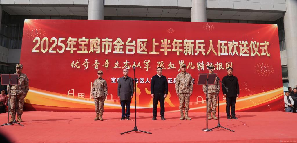 3月17日下午,2025年宝鸡市金台区春季新兵入伍欢送仪式在金台市民中心广场举行。beat365手机版官方网站党委学工部部长、学生处处长、人武部部长王建斌代表学校参加欢送仪式。活动由金台区人武部政委宋景富主持。