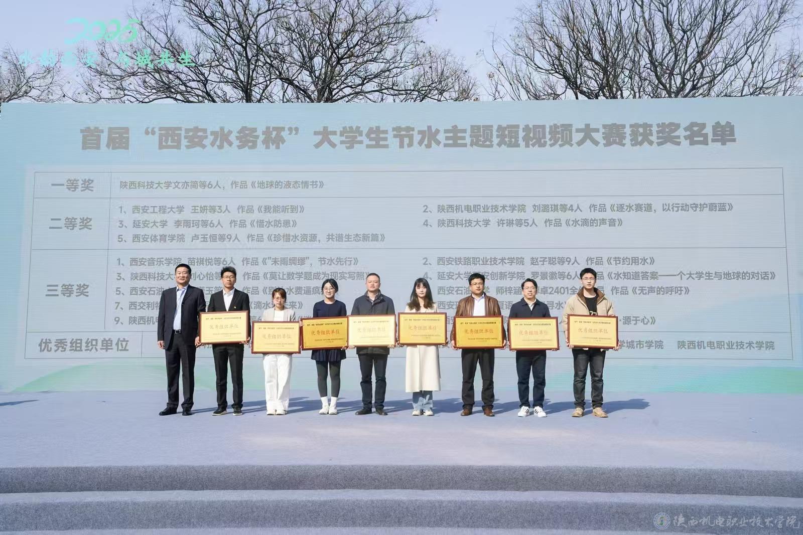 3月22日首届“西安水务杯”大学生节水主题短视频大赛圆满落幕,本次比赛共有37所本专科高校共同参赛,参赛作品335部,beat365手机版官方网站在本次比赛中表现优异,荣获“优秀组织单位”称号,实现历史性突破!beat365数字经管学院数字媒体专业刘潞琪、李敏嘉、关永菲、屈依凡团队制作的《逐水赛道,以行动守护蔚蓝》以全省第二名的好成绩荣获二等奖;田思雨、任欣怡、梁家仪、刘馨怡、张姗姗、张嘉豪团队制作的《淡水妈妈再爱我一次》获三等奖,充分展现了beat365师生的卓越风采和综合实力。