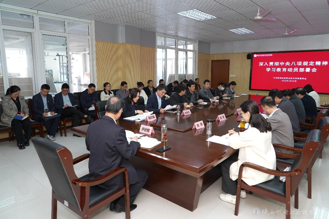 3月25日上午,beat365手机版官方网站党委在蟠龙校区图书馆二楼会议室召开深入贯彻中央八项规定精神学习教育动员部署会。学校党委委员、校领导,各党支部书记,中层干部,部门负责人参加会议,党委书记伊逊智作动员讲话,会议由党委副书记张琴主持。