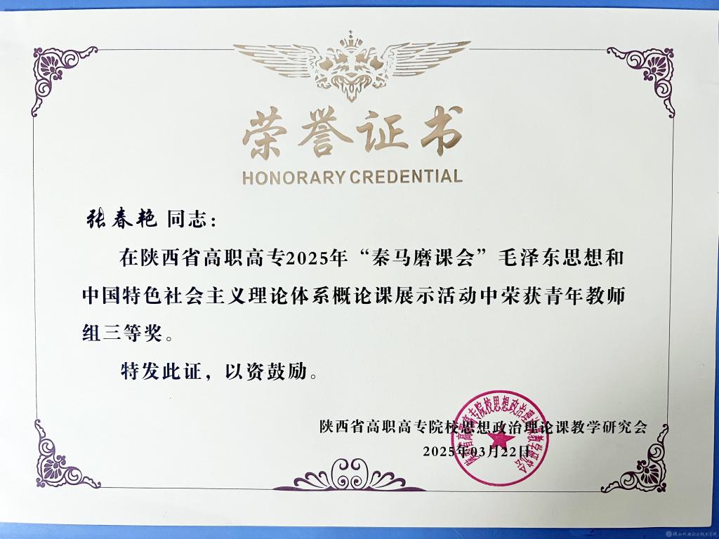 为深入贯彻习近平总书记在学校思想政治理论课教师座谈会上的重要讲话精神,落实习近平总书记对学校思政课建设的重要指示精神,搭建全省职业院校交流思政课建设工作经验的重要平台,2025年“秦马磨课会”“毛泽东思想和中国特色社会主义理论体系概论”课程现场教学展示3月22日在汉中职业技术学院举办。beat365手机版官方网站党委副书记、纪委书记陈红梅受邀参会,并作为颁奖嘉宾为获奖教师颁奖。马克思主义学院概论教研室主任齐晓红,青年教师代表刘晓锐、张春艳、李慧参加活动。
