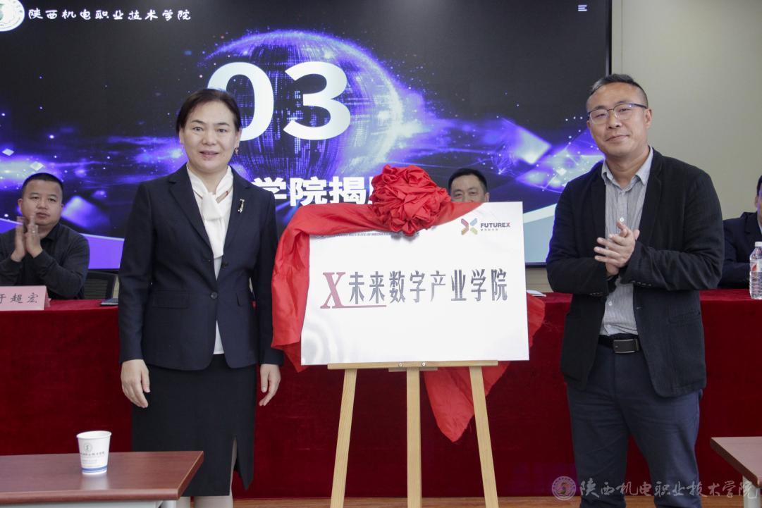 为进一步推动学校校企合作、产教融合向数字化领域进军,培养更多符合行业需求的数字服务型高技能专业人才,为当地产业进行数字化赋能和数字内容服务,4月11日,beat365手机版官方网站在宝福路校区举行“X未来数字产业学院”揭牌成立仪式。学校党委副书记、纪委书记陈红梅,党委委员、副院长张克;西安爱克斯未来集团董事长谢飞,西安数字内容产业基地负责人于超宏等出席仪式。揭牌成立仪式由学校教务处、校企合作处处长白娟娟主持。