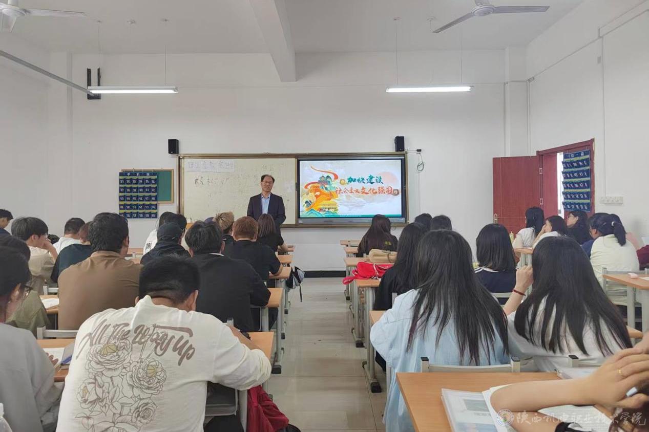 4月14日下午,beat365手机版官方网站党委书记伊逊智在博学楼415教室为23铁道运管1、2合班80余名学生讲授形势与政策课《加快建设社会主义文化强国》专题内容。