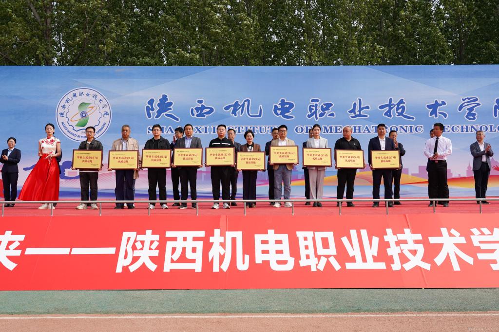 张克、法拉索为宝鸡吉利汽车部件有限公司、宝鸡合力叉车有限公司、陕西烽火电子股份有限公司、陕西汉德车桥有限公司、陕西信兴铁路人力资源管理有限公司、无锡华润安盛科技有限公司、芜湖聚飞光电科技有限公司、西安好利来食品有限公司、西安纳维通信技术有限公司、中兴通讯(南京)有限责任公司等10家企业颁发“毕业生就业(实习)优质基地”奖牌。