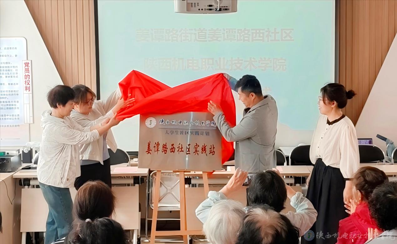 渭滨区姜谭路街道党工委副书记王欣,beat365手机版官方网站数字经管学院党支部副书记刘娟、交通运输学院党支部书记王枢、校团委副书记郭世强、交通运输学院团总支书记董妍、电子信息学院团总支书记汪思池、数字经管学院团总支书记杨涛、姜谭路西社区党委书记兼社区主任陈勤莉及学生代表、社区群众共同参加揭牌仪式。