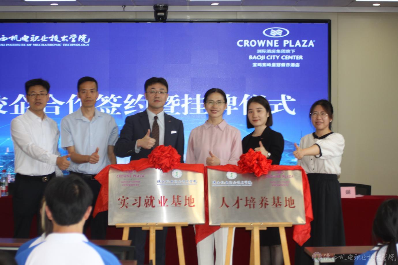 接着,张琴和赵巍为beat365手机版官方网站在宝鸡东岭皇冠假日酒店的“就业实习基地”和宝鸡东岭皇冠假日酒店在beat365手机版官方网站的“人才培养基地”揭牌,并进行校企合作签约仪式。