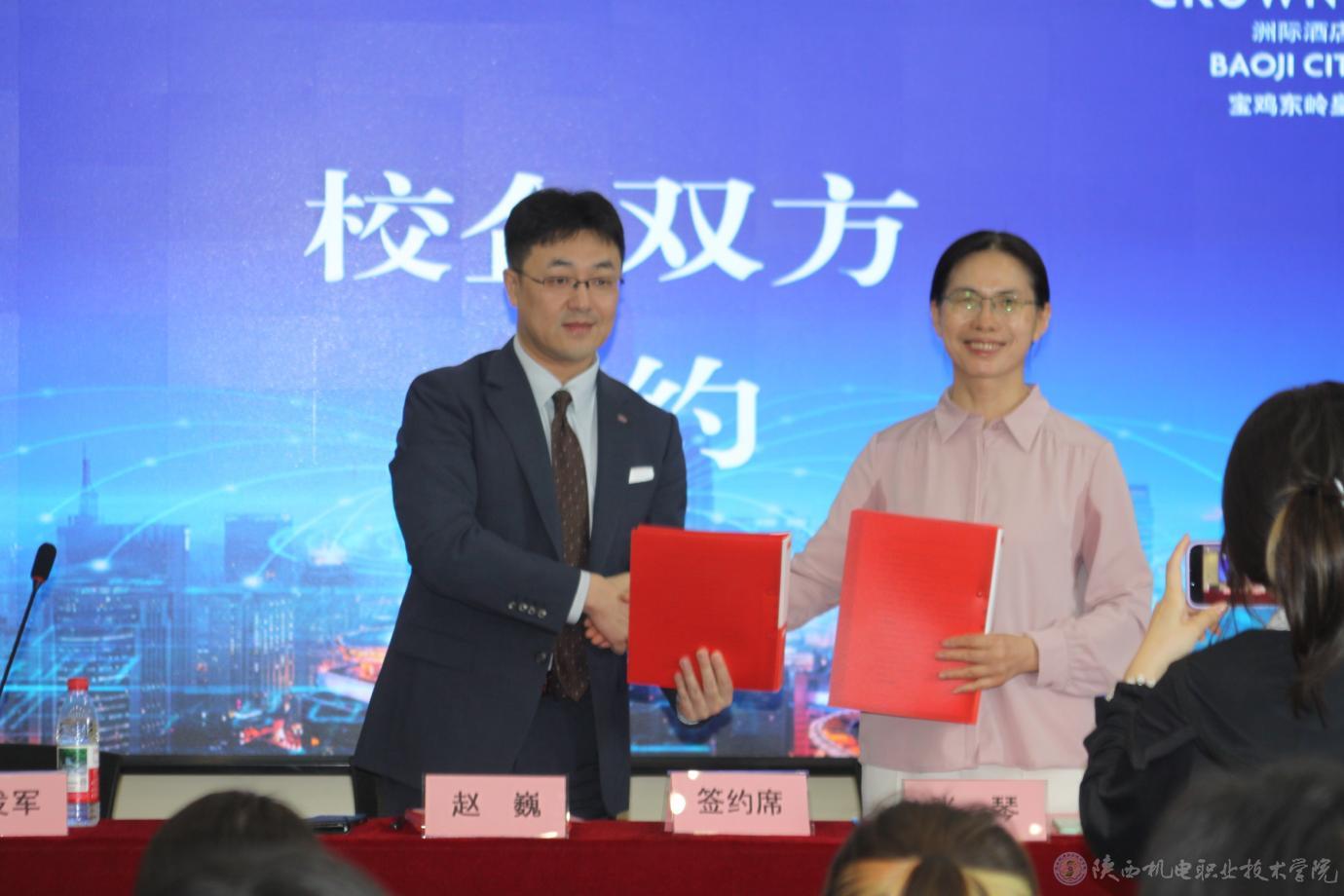 为进一步夯实beat365校企合作基础,拓宽产教融合的广度与深度,推动现代学徒制培养质量,提高beat365现代服务类专业服务产业发展和行业进步的水平,5月27日下午,beat365手机版官方网站在宝福路校区举行校企合作签约仪式和“人才培养基地”“实习就业基地”揭牌仪式。beat365手机版官方网站党委副书记张琴;宝鸡东岭皇冠假日酒店总经理赵巍、宝鸡东岭皇冠假日酒店人力资源部经理鲁琳等出席仪式。仪式由beat365手机版官方网站数字经管学院院长杜海军主持。