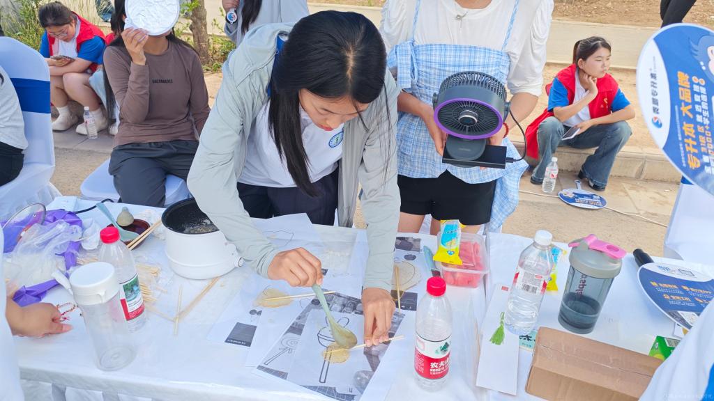 除了精彩纷呈的文艺汇演,首届校园文化节还精心策划了一系列丰富多彩的文化展示活动。文化创意集市上,同学们精心布置的摊位上,各类创意商品琳琅满目,互动游戏趣味横生,充分展现出同学们天马行空的创意与卓越的才华;书画展览区,一幅幅精美的书签作品令人驻足,或笔走龙蛇、飘逸洒脱,或工笔细描、细腻入微,每一副作品不仅体现了同学们对传统文化的热爱,也折射出学院深厚的文化积淀。