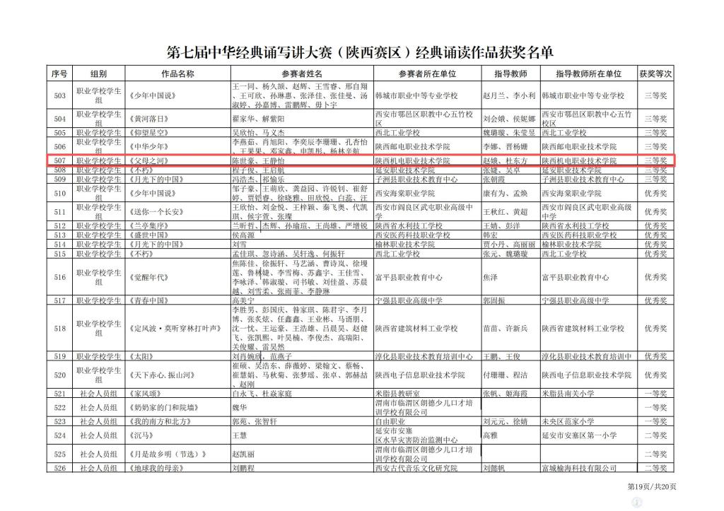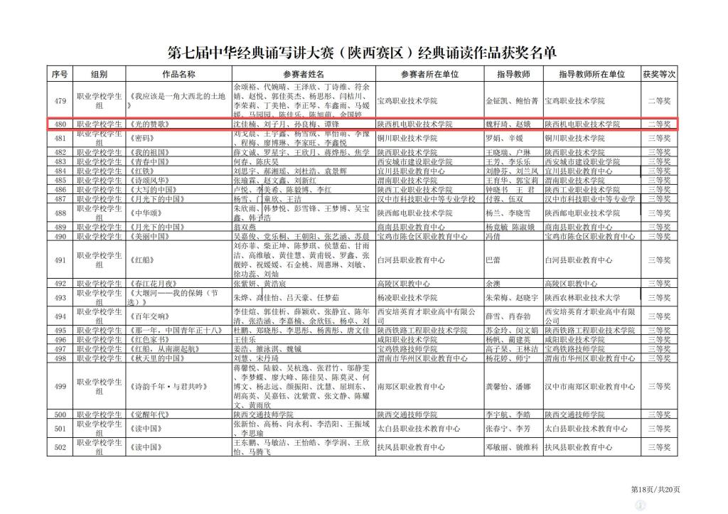 经典诵读类学生组获奖名单 1
