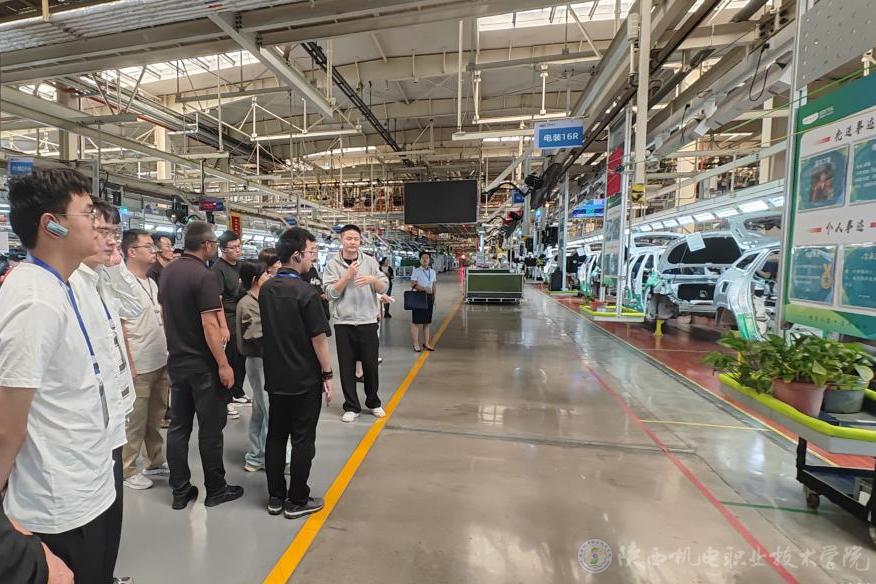 下午,国培班学员乘车前往宝鸡吉利汽车公司,参观全自动车身装配车间、总装车间及吉利企业大学,了解工业机器人在企业生产中的应用。