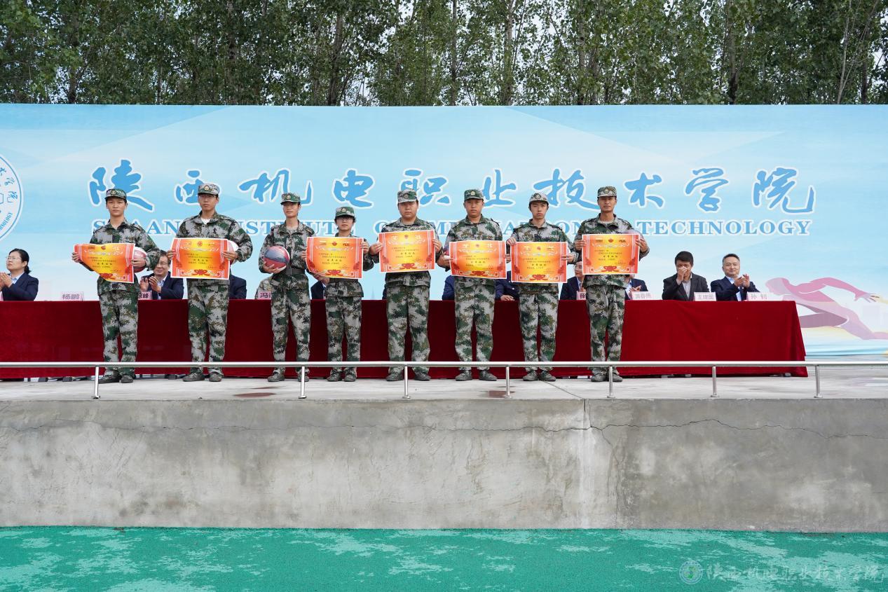 党委委员、党委宣传部部长李明,电子信息学院党支部书记杨鹏分别宣读军训表彰文件,对军训期间表现突出的优秀班级、优秀辅导员、优秀班主任及军训标兵予以表彰,并现场颁发奖励。
