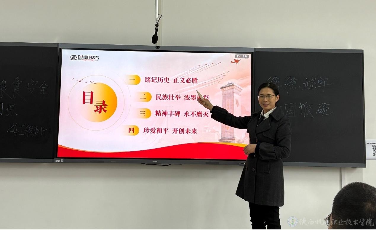 张琴结合东北抗联游击战争、淞沪会战、台儿庄大捷等典型战例,纪念中国人民抗日战争暨世界反法西斯战争胜利80周年大会,从“铭记历史 正义必胜”“民族壮举 浓墨重彩”“精神丰碑 永不磨灭”“珍爱和平 开创未来”四个方面进行讲授,系统梳理了中国人民抗日战争的伟大历程,深刻阐述了抗日战争的伟大意义及伟大抗战精神的丰富内涵,通过对比同时期世界反法西斯战场数据,强调中国战场作为东方主战场的决定性作用。讲授过程中,张琴与同学们积极互动,共同合唱《义勇军进行曲》,课堂氛围热烈。