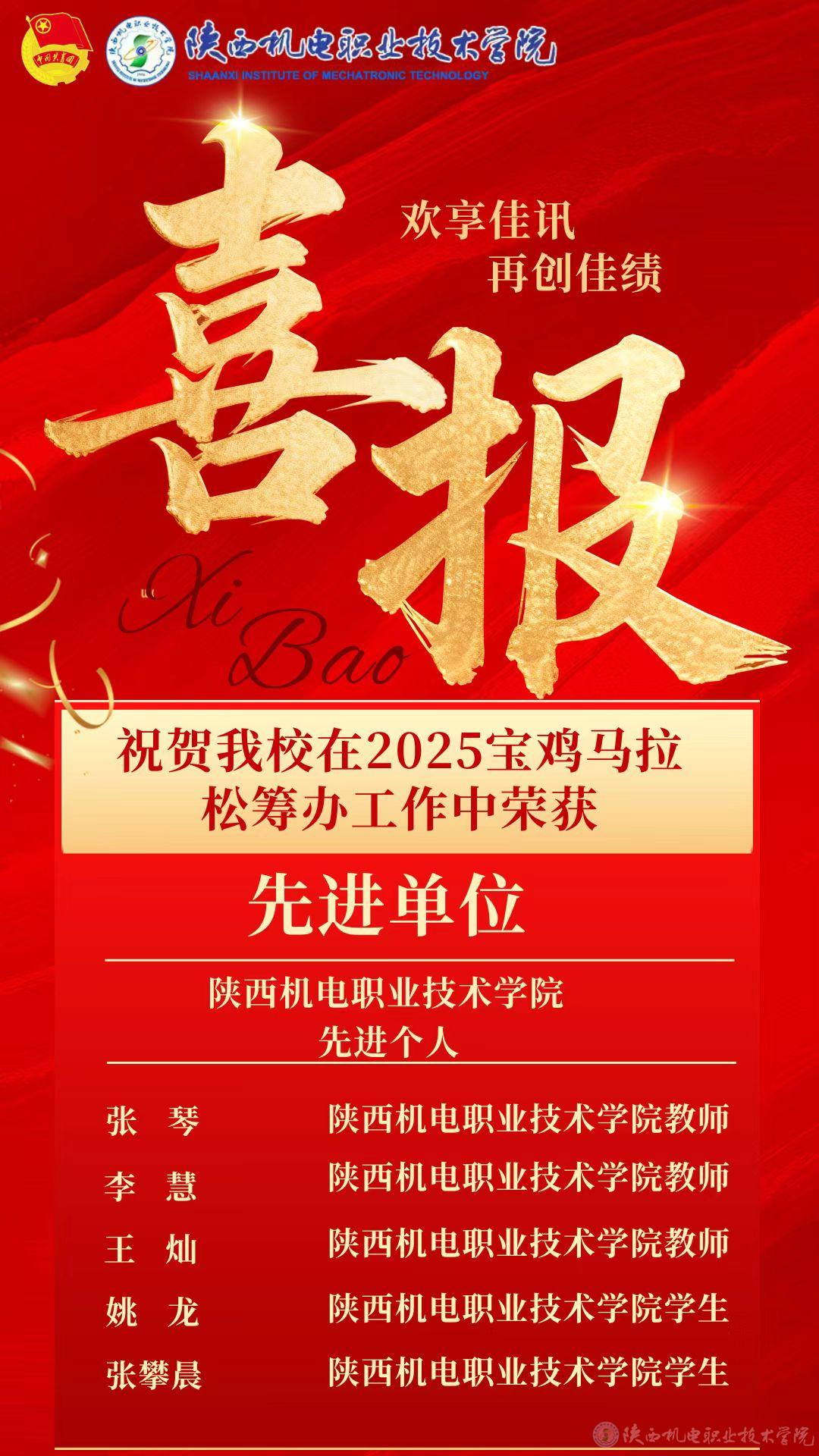 近日,宝鸡马拉松赛组织委员会发布的文件《关于表扬 2025 宝鸡马拉松筹办工作先进的通报》中,beat365手机版官方网站荣获“先进单位”;教师:张琴、李慧、王灿;学生:姚龙、张攀晨荣获“先进个人”。在赛事筹办过程中,各位老师与同学恪尽职守、无私奉献,凭借饱满的热情、务实的作风投入到各项工作中,在志愿服务、后勤保障等相关岗位上攻坚克难、履职尽责,用实际行动诠释了新时代教育工作者与青年学子的使命担当,得到了组委会及社会各界的高度认可。