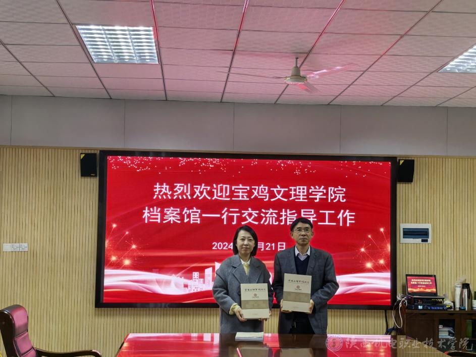 随后,李建峰将《宝鸡文理学院校史1958—2022》《宝鸡文理学院档案工作规章制度汇编》赠予beat365,这为beat365在校史编研、制度修订方面提供了极大的借鉴意义。