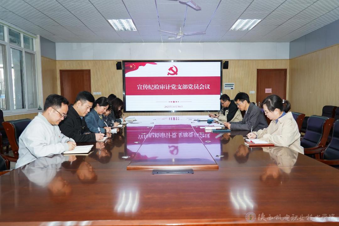 2025年10月30日上午,宣传纪检审计党支部在蟠龙校区图书楼二楼会议室召开支部党员大会,组织开展政治理论学习,并讨论接收预备党员事宜。支部全体党员参加会议,会议由党支部书记李明主持。